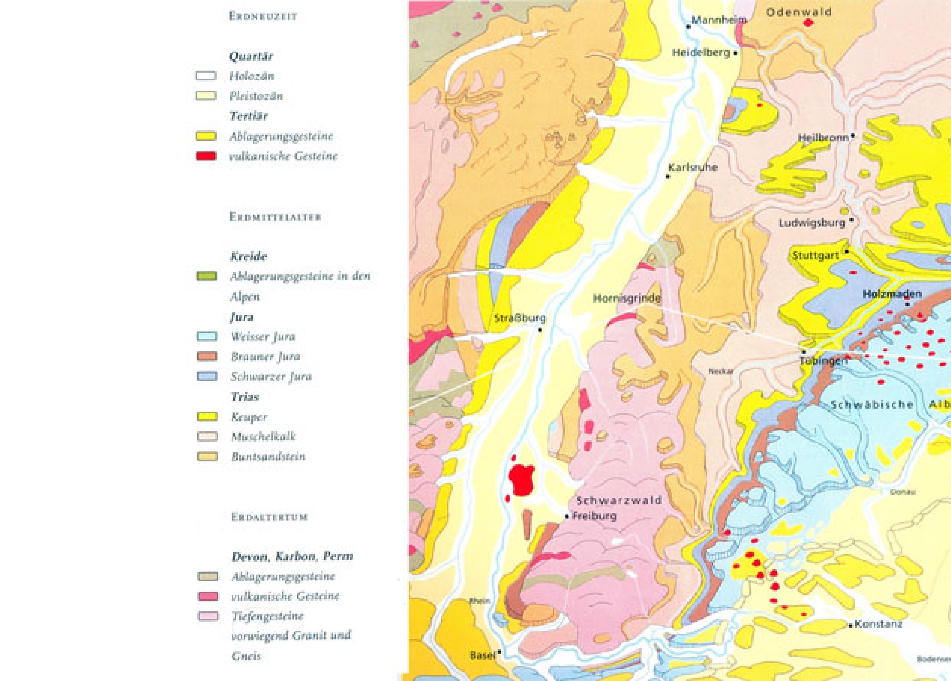 Die Schwäbische Alb ist aus den Schichten des Schwarzen, Braunen und Weißen Juras aufgebaut. Zusammen sind sie etwa 700 Meter mächtig.
