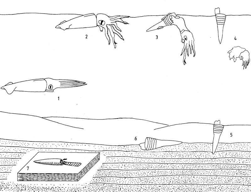 Die Erhaltung von Belemniten mit Weichteilen ist auf ihr außergewöhnliches Schicksal nach dem Tode zurückzuführen. Verletzte Tiere, die nicht gefressen wurden, sanken rasch auf den Meeresboden und wurden mit ihren Weichteilen eingebettet.